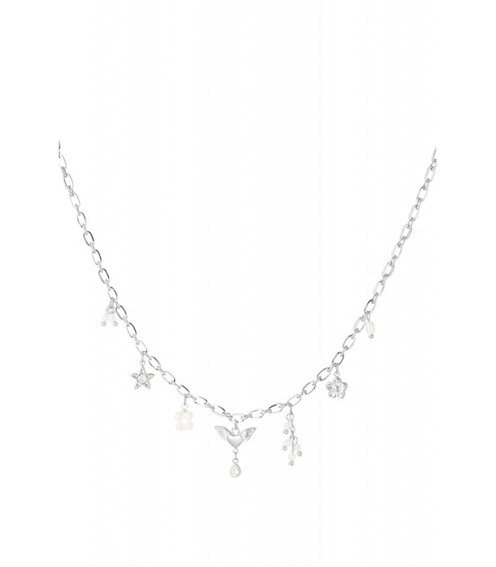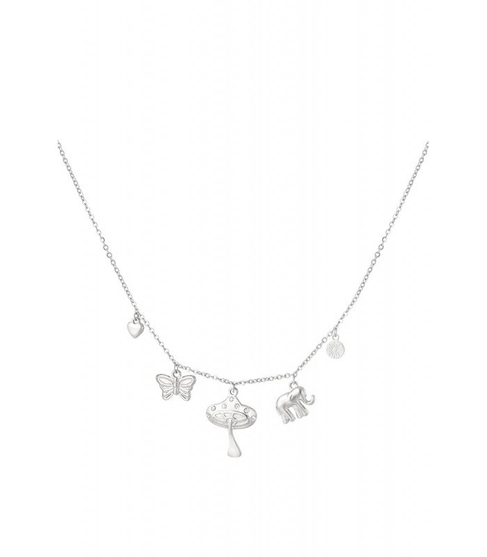 Deze zilverkleurige halsketting is voorzien van meerdere unieke hangertjes, wat zorgt voor een speelse en veelzijdige uitstraling. Het tijdloze zilverkleurige ontwerp maakt het een perfecte aanvulling op elke outfit. Wist je dat het combineren van verschillende hangers op een ketting een populaire trend is in de modewereld? Het stelt je in staat om je persoonlijke stijl en verhalen uit te drukken.