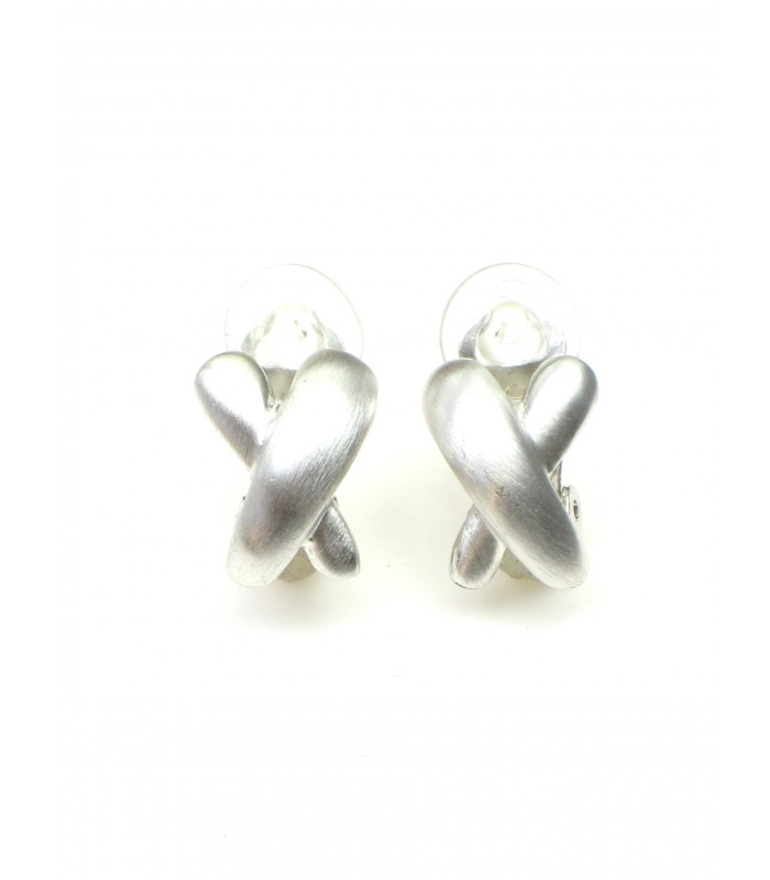 Zilverkleurige oorclips in de vorm van een X. Lengte van de clip oorbel is 1,6 cm.