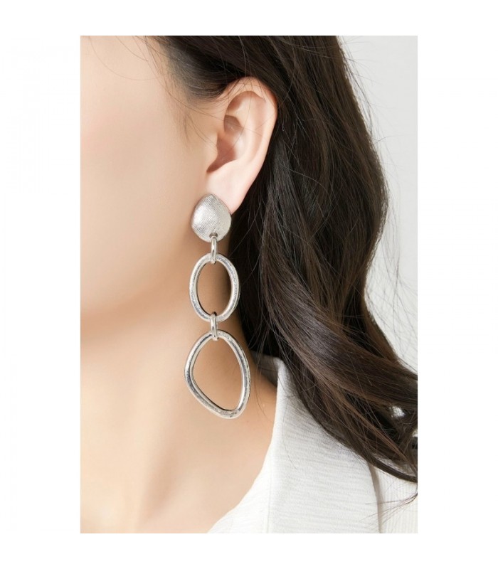 Zin in een opvallend sieraad zonder gaatjes? Deze zilverkleurige oorclip bestaat uit drie speels gevormde schakels met een subtiele textuur. De combinatie van ovale en organische vormen geeft een moderne twist aan een klassiek statement. Perfect voor een feestje, diner of gewoon om je look net dat beetje extra te geven.