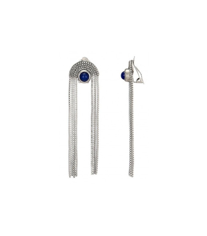 Op zoek naar opvallende oorclips met een elegante touch? Deze zilverkleurige oorbellen met diepblauwe steen en speelse kettingdetails trekken gegarandeerd de aandacht. Perfect voor een avondlook of stijlvolle outfit upgrade. Zilverkleur en diepte De combinatie van strakke lijnen, glanzende afwerking en een krachtige kleursteen maakt deze clip oorbellen ideaal als statement sieraad. De lange kettingen creeren beweging en geven je outfit direct een modieuze twist.