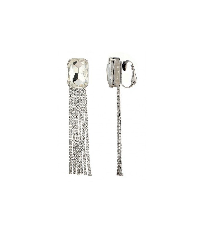 Hoe voeg je glamour toe aan je look in een beweging? Deze oorclips combineren een grote, helder geslepen steen met elegante zilverkleurige strass franjes. De lange lijnen vangen het licht bij elke stap, perfect voor feestelijke gelegenheden of een stijlvolle avond. Feestelijk Deze fashion oorbellen geven direct een luxe uitstraling aan je outfit.