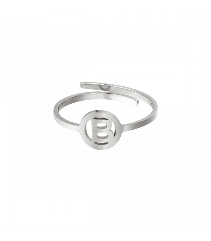 Zilverkleurige ring met initiaal B in cirkel. Heb je een feestje, een bruiloft of wil je gewoon jezelf verwennen? Yehwang is een modern, hip en eigentijds sieraden merk. Veel glitter, zilver en goud met vaak een uitstekende afwerking zoals gold plating en gemaakt van roestvast. Hierdoor krijgen de ringen niet alleen een hippe uitstraling, maar zijn ze ook gemaakt van kwalitatief, hoogwaardig materiaal.