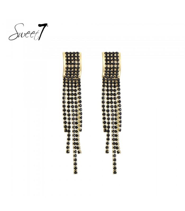 Zoek je oorbellen die je avondlook direct naar een hoger niveau tillen? Deze goudkleurige oorbellen met zwarte strass steentjes stralen pure glamour uit. De vallende strengen creeren beweging en vangen elk licht. Perfect voor een feestje, diner of speciale gelegenheid. Statement zonder overdaad De combinatie van zwart en goud blijft een modetopper. Deze oorbellen passen perfect bij een little black dress of een minimalistische outfit. Ze zijn opvallend, maar stijlvol in balans. Voeg ze toe aan je sieradencollectie voor een elegante upgrade.