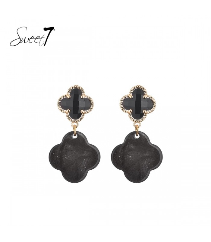 Deze zwarte klaver vier oorhangers, afgewerkt met een subtiele goudkleurige rand. Het klavertje vier staat symbool voor geluk en de combinatie met de gouden rand voegt een vleugje luxe toe. Gemaakt van hoogwaardige materialen zorgen deze oorbellen voor een modieuze uitstraling.