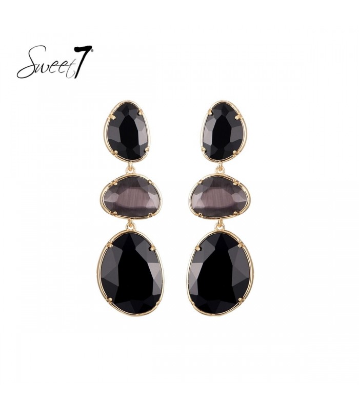 Hoe trek je moeiteloos alle aandacht naar je gezicht? Deze statement oorbellen combineren zwarte en rookgrijze facetten in een elegante, druppelvormige compositie. De goudkleurige rand voegt precies de juiste touch of glam toe voor een krachtige, vrouwelijke uitstraling. Chique uitstraling met impact De drie zorgvuldig geplaatste stenen zorgen voor lengte en beweging. Perfect voor een avondlook of als eyecatcher bij een minimalistische outfit. Deze oorbellen geven jouw look een luxe upgrade met een tijdloos karakter.