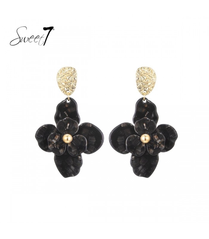 Zwarte bloem oorbellen met goudkleurige kern en oorstukje