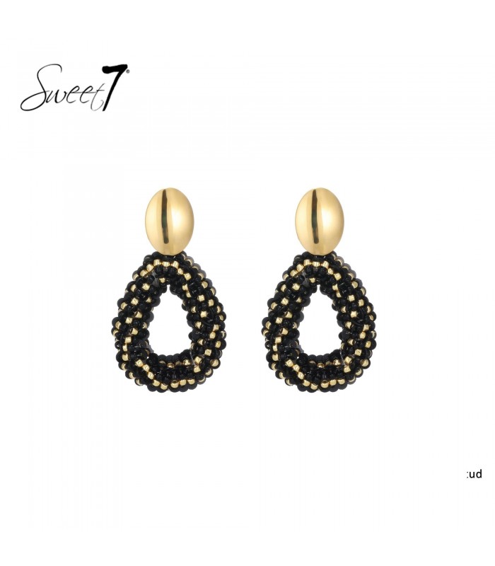 Zoek je oorbellen die zowel glamoureus als speels zijn? Deze zwart, gouden oorbel van Sweet7 combineert elegante metallic accenten met een opvallend geweven druppelvorm. De combinatie van kraaltjes in goud en zwart zorgt voor een gedurfde fashion look die meteen opvalt.