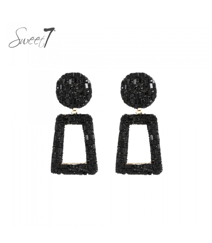 Wat zegt meer dan woorden, maar straalt pure stijl uit? Deze zwarte oorbellen doen precies dat. Hun geometrische vormen, een ronde top en open trapeze onderstuk, zijn volledig bezet met glanzende zwarte steentjes. Elk facet vangt het licht op een subtiele manier, alsof elke beweging fluistert. Kijk naar mij, maar alleen als je durft.