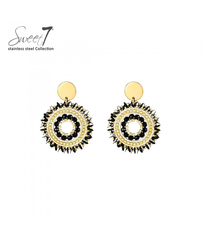 Hoe trek je moeiteloos de aandacht zonder te overdrijven? Deze ronde oorbellen van Sweet7 combineren zwart en goud in een verfijnd patroon van kralen en metalen accenten. Het grafische design zorgt voor een moderne en krachtige uitstraling. Oorbellen met een super mooi detail De buitenrand met zwarte kralen geeft deze oorbellen een subtiel randje, terwijl de binnenste cirkels zorgen voor structuur en balans. En opvallend tegelijk - ideaal voor wie durft te kiezen voor karakter in stijl.