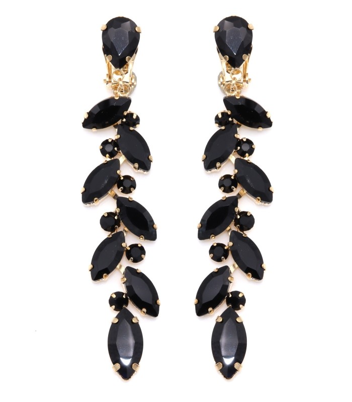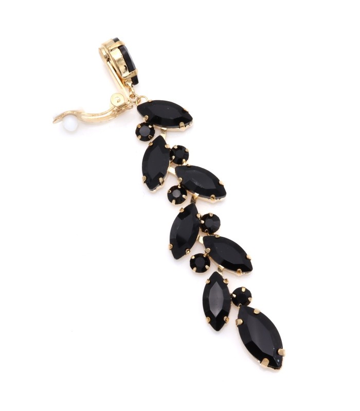 Zoek je een statement die elke outfit verheft? Deze zwarte oorclips met goudkleurige details combineren glamour met een stijlvolle uitstraling. De marquise geslepen stenen vangen het licht subtiel, terwijl het ontwerp een sierlijk silhouet creeert. Perfect voor een avondlook of als eyecatcher bij een minimalistische outfit. Lichtgewicht statement met comfort Ondanks hun lengte zijn deze oorbellen comfortabel door de zachte rubbertjes. De combinatie van zwart en goud past moeiteloos bij andere modeaccessoires en sluit perfect aan bij populaire zoektermen zoals statement oorbellen en zwarte oorclips.