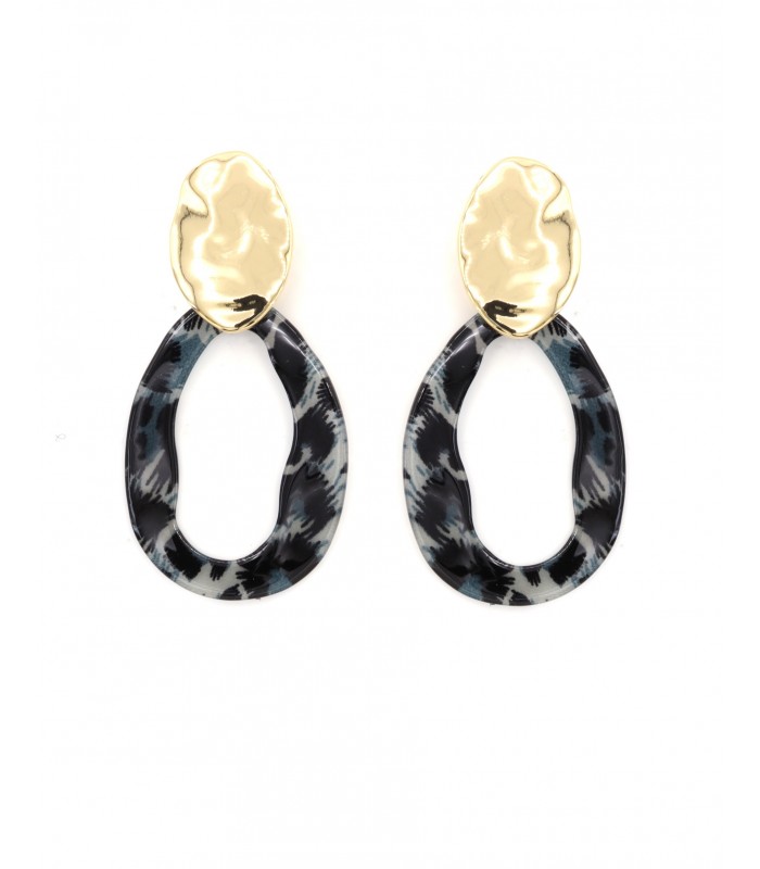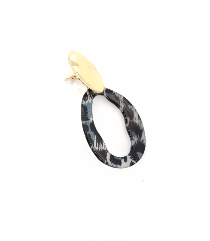 Stijlvol en speels contrast. Wil je een oorbel die elegantie en karakter combineert? Deze oorclip met gemarmerde ovalen ring in grijs en zwarttinten en een goudkleurige bovenkant zorgt voor een opvallende, moderne look. Perfect bij zowel casual als geklede outfits. Het gemeleerde patroon maakt elke set uniek, terwijl de matte glans van het goud zorgt voor een verfijnde afwerking.