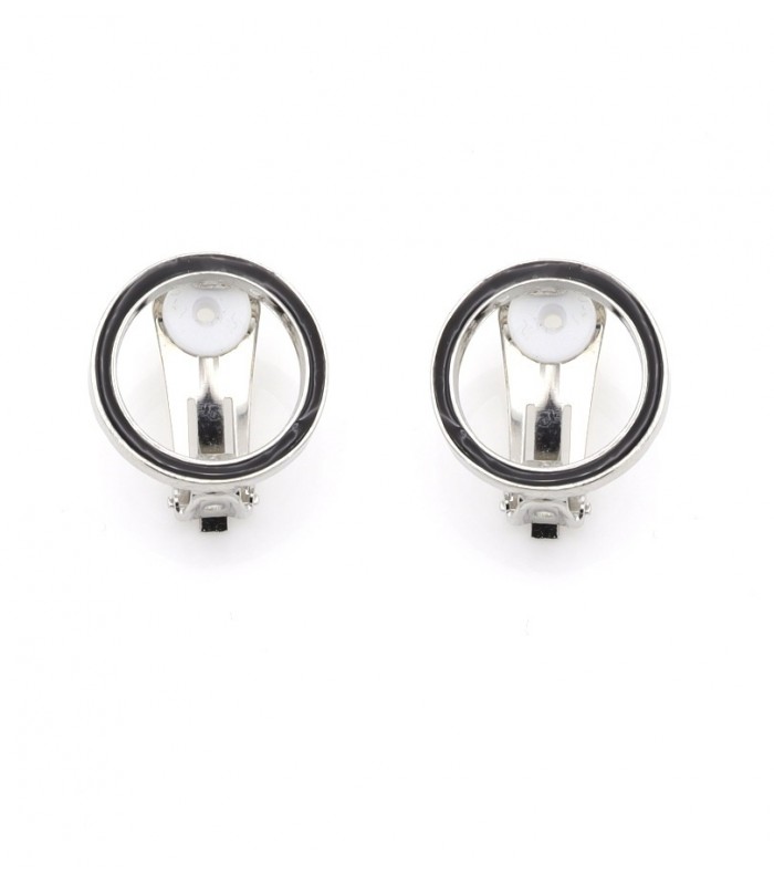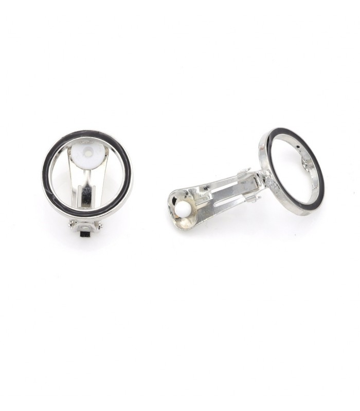 Oorclips zwart met strakke ronde vorm en zilverkleurige achterkant