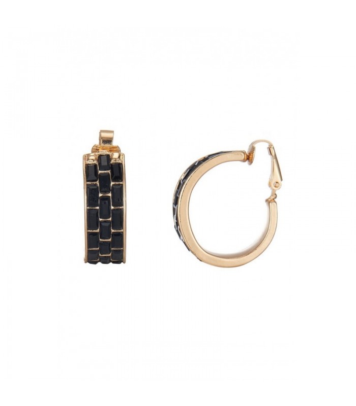 Zwarte creolen oorclips met goudkleurige vakjes: Tijdloos en modern.