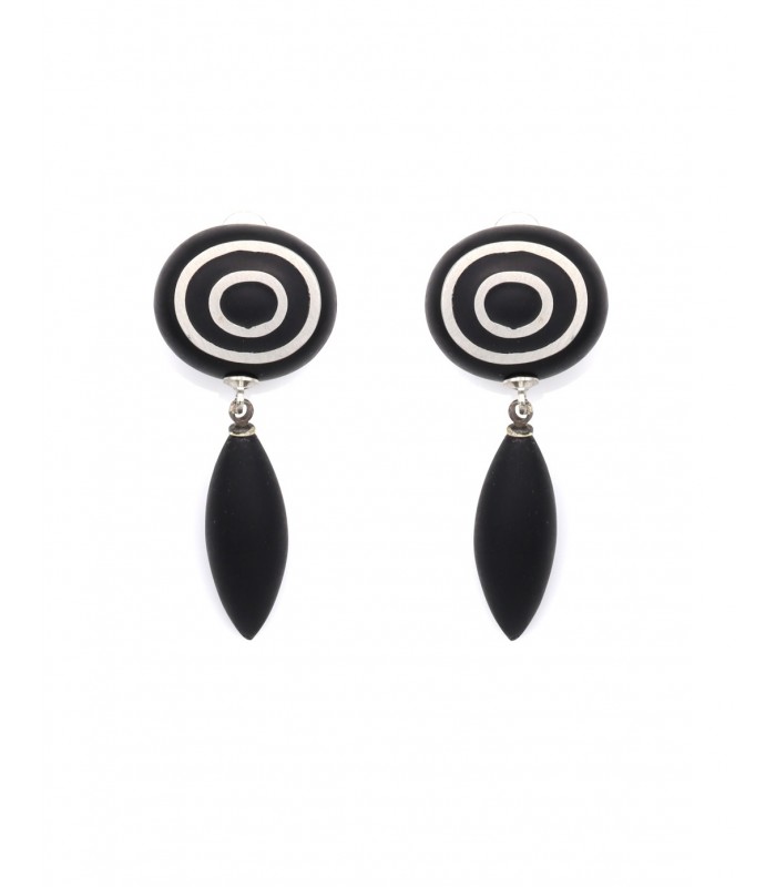 Hoe geef je jouw look kracht met een opvallend detail? Deze oorclips met zwart, wit cirkelmotief en matte hanger zijn een echte blikvanger. De grafische lijnen zorgen voor contrast en ritme, terwijl de druppelvormige onderzijde het ontwerp elegant afrondt. Oorclips met moderne stijl Dankzij de zachte rubbertjes draag je ze de hele dag comfortabel, ook zonder gaatjes. De combinatie van geometrie en strakke vormen maakt deze oorclips ideaal voor wie houdt van een uitgesproken, stijlvolle look.