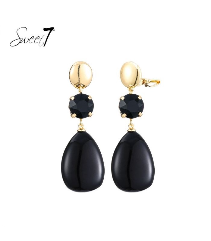 Wil je opvallen met elegante oorbellen, maar heb je geen gaatjes? Deze zwarte oorclip van Sweet7 biedt de perfecte mix van stijl en comfort. De combinatie van een glanzende zwarte druppelvorm en gouden accenten straalt pure elegantie uit. Tijdloos zwart met goudaccent De diepe zwarte steen en de glanzende druppel geven deze oorclips een luxe uitstraling. De clip is subtiel maar stevig, met zachte rubbertjes voor comfortabel dragen. Perfect voor een avondlook of als stijlvolle toevoeging aan je dag outfit.